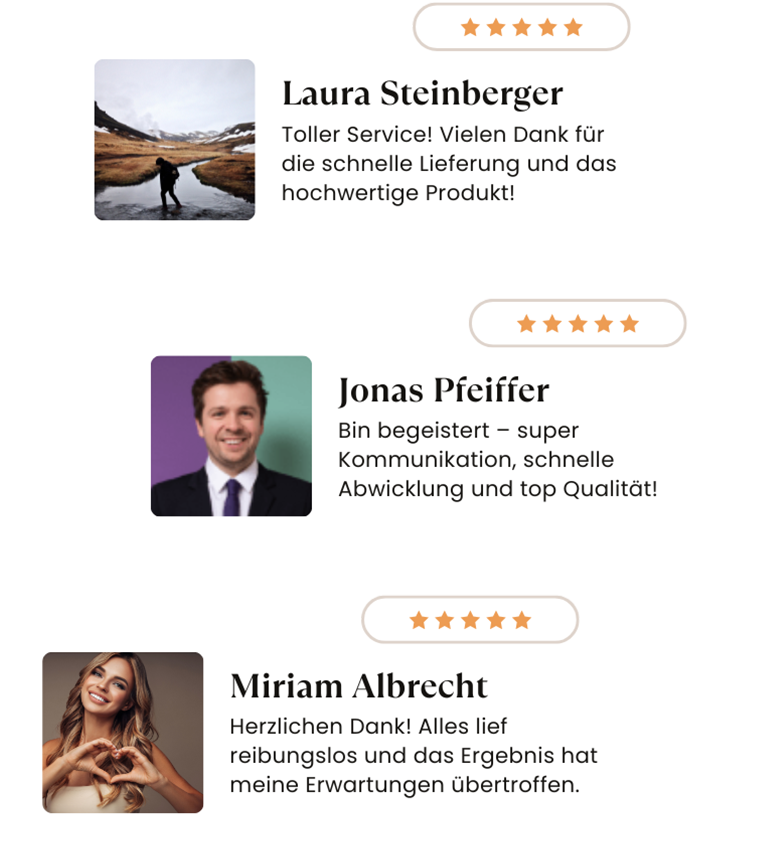"Schnelle Umsetzung und top Qualität! Die Bewertungen wirken authentisch und haben genau die richtige Tonalität. Unser Image hat sich deutlich verbessert"